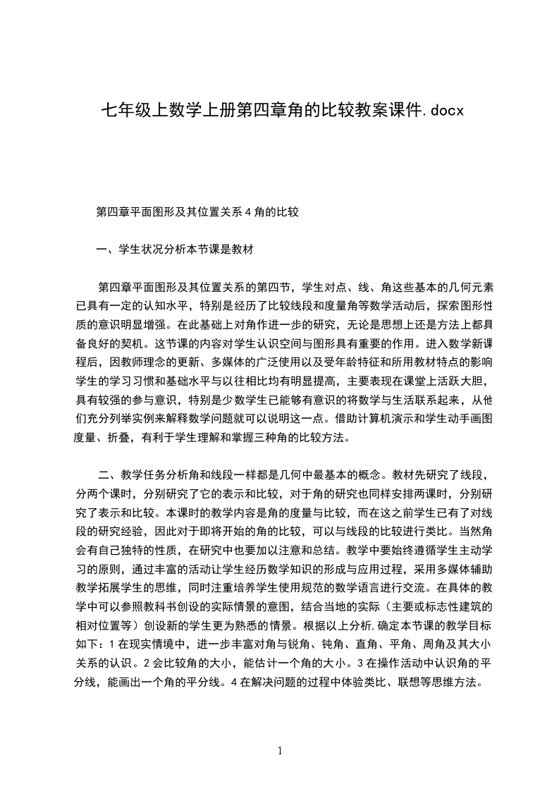 师:今天有两位数学王国的成员发生了激烈的争吵,你们想不想去看一看,是∠1和∠2,它们两个都认为自己比对方大,现在请同学们当小法官,用以前我们学过的知识比较两个角的大小?很明显谁大一些,但是∠2还是不服气,它想知道∠1到底比自己大多少,你有办法吗?