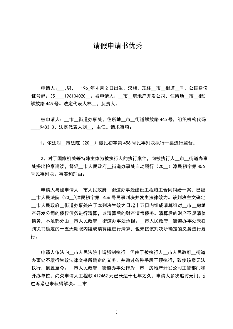 请假申请书篇三