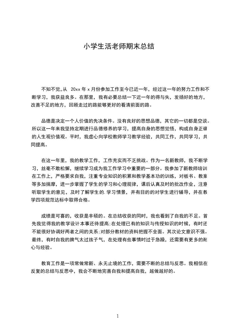 教育工作是一项常做常新、永无止境的工作,需要不断的总结与反思。我相信在反复的总结与反思中,我会不断地完善自我和提高自我,越做越好的。
