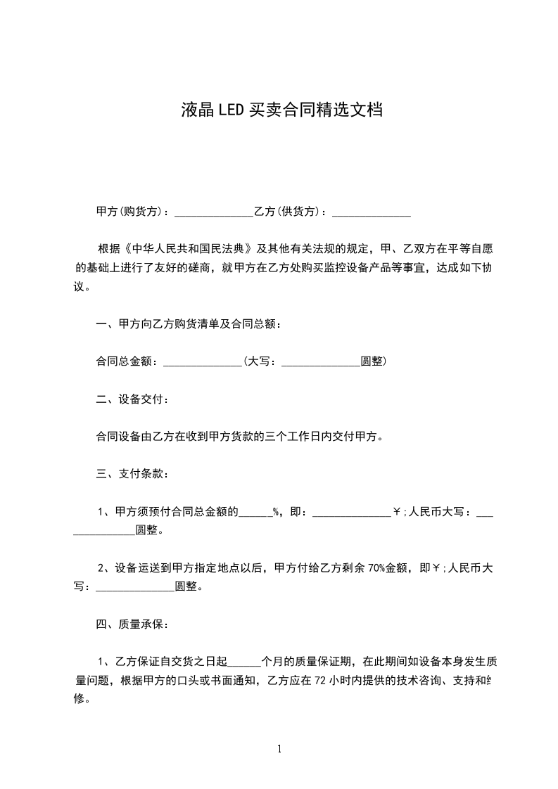 根据《中华人民共和国民法典》及其他有关法规的规定,甲、乙双方在平等自愿的基础上进行了友好的磋商,就甲方在乙方处购买监控设备产品等事宜,达成如下协议。