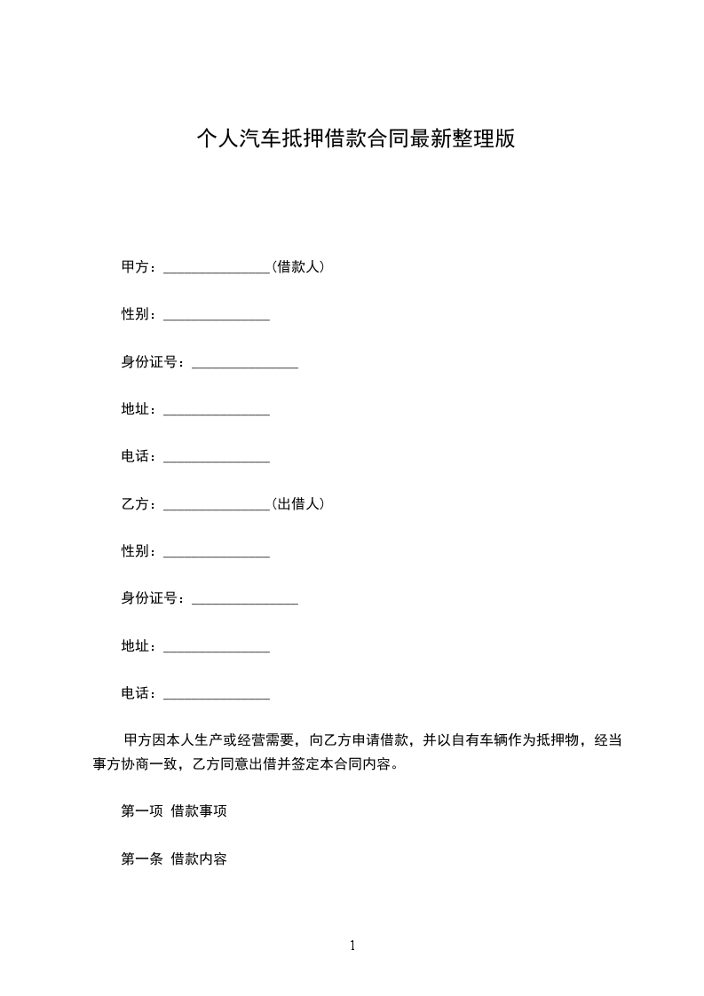 甲方因本人生产或经营需要,向乙方申请借款,并以自有车辆作为抵押物,经当事方协商一致,乙方同意出借并签定本合同内容。