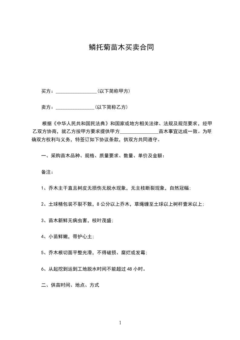 2、要求乙方在运输过程中保证苗木无短缺、无损坏。