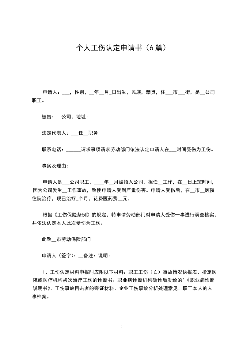 个人工伤认定申请书篇六