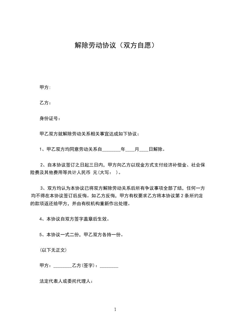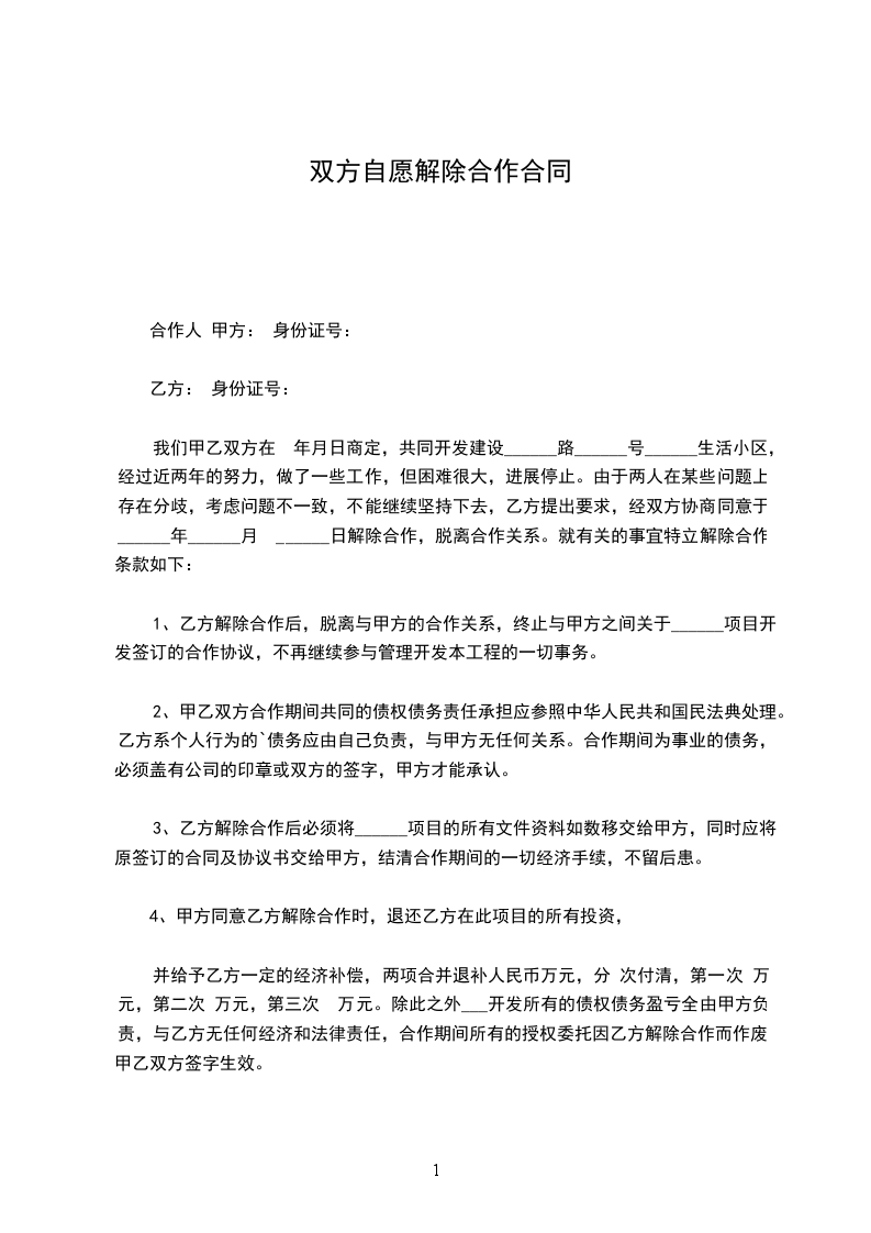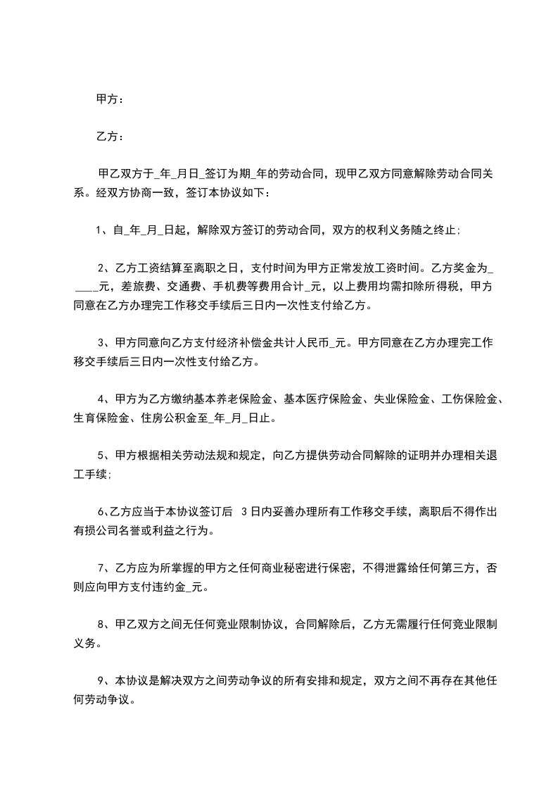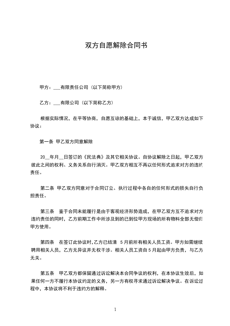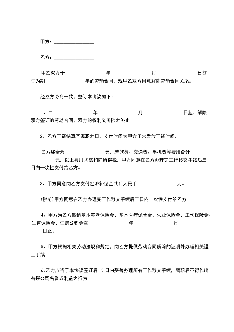 五、原合同终止后,双方同意就原合同事项互不追究法律责任。