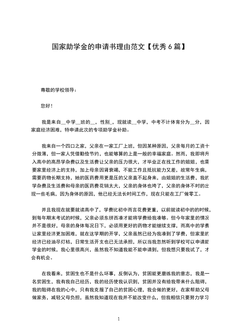 我是__级__系_班的学生__,我家住在__县__乡__村,家中有爸妈、哥嫂和我。我想通过申请国家助学金以减轻家里的经济负担。属__省十大贫困县之首的__县是一个经济贫穷、文化落后的地方,虽然经过这几年经济飞速的经济发展,很多家庭已经有钱供自己的孩子完成学业,但面对高昂的学费生活费大部分家庭还是非常拮据的,基本上每年学生去学校就带走家里的全部积蓄。
