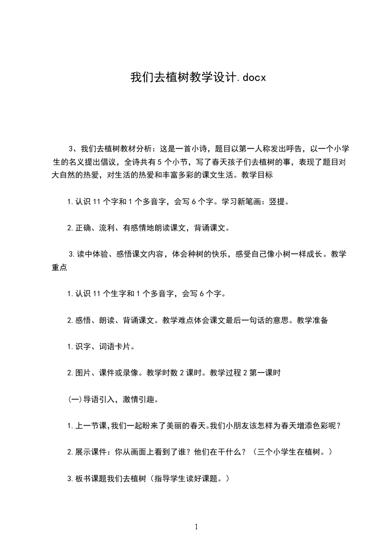一、情境导入:同学们,秋天到了。秋天师播种的季节,为了今后我们的生活处处充满绿色,今天我们就要去进行植树活动。
