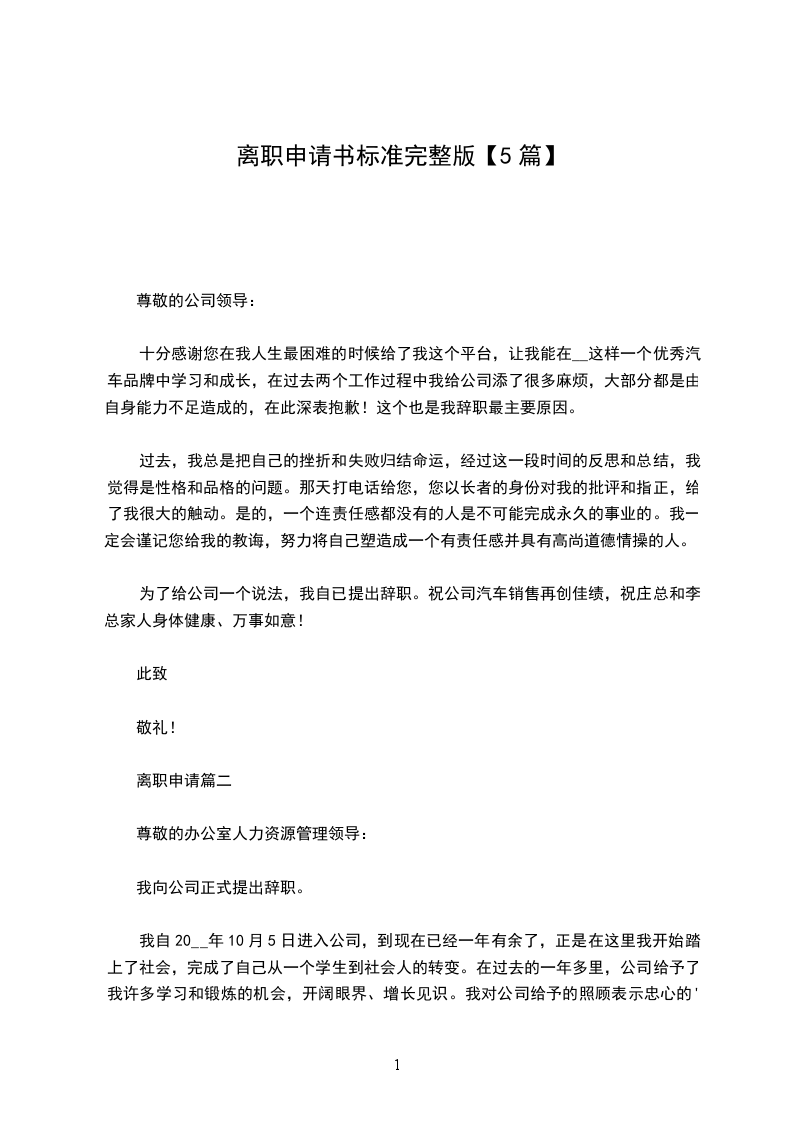 离职申请篇五