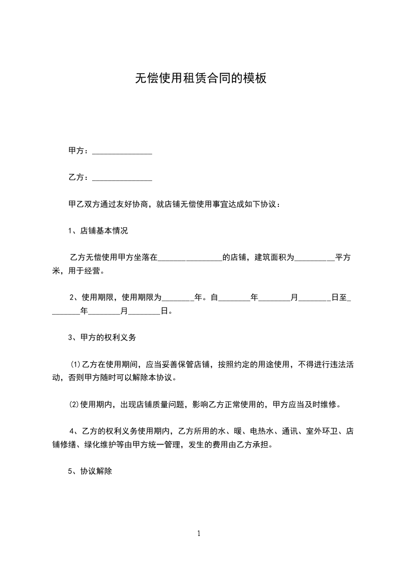 甲乙双方通过友好协商,就店铺无偿使用事宜达成如下协议: