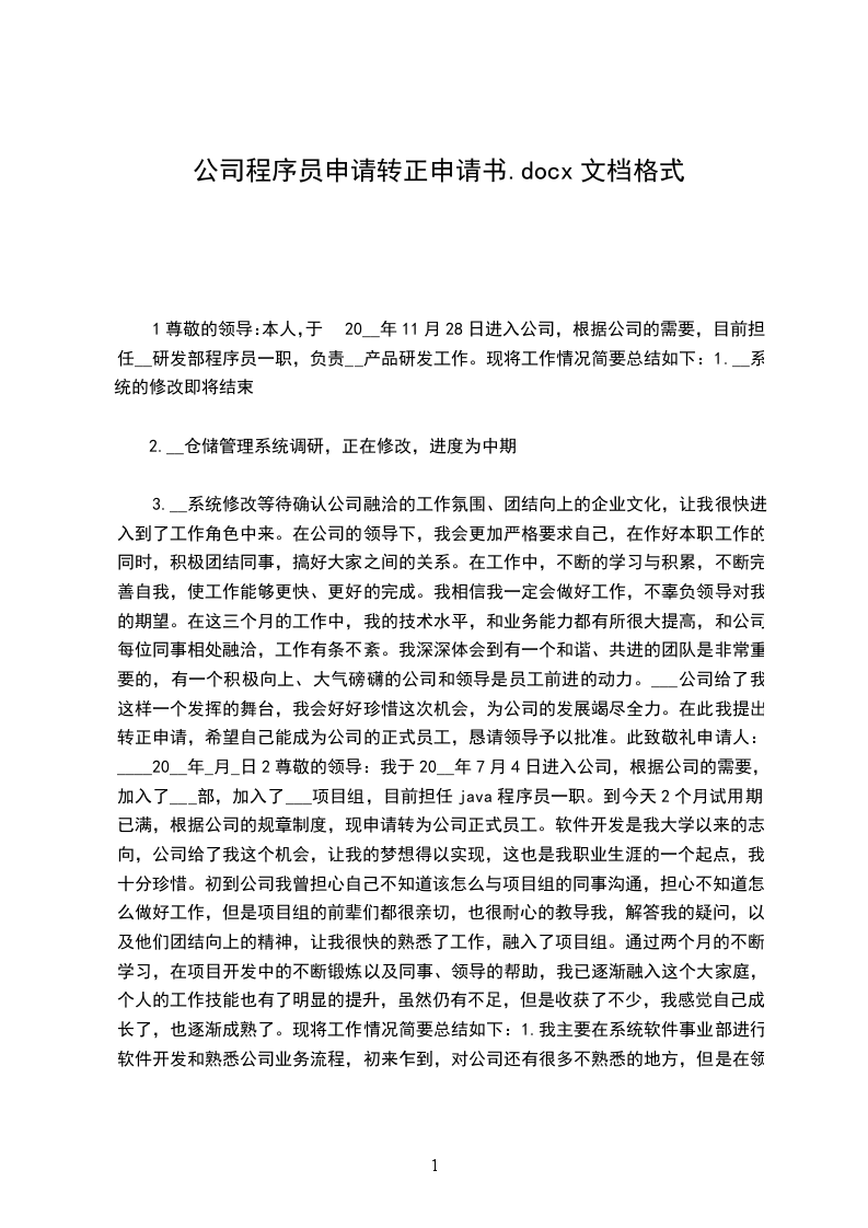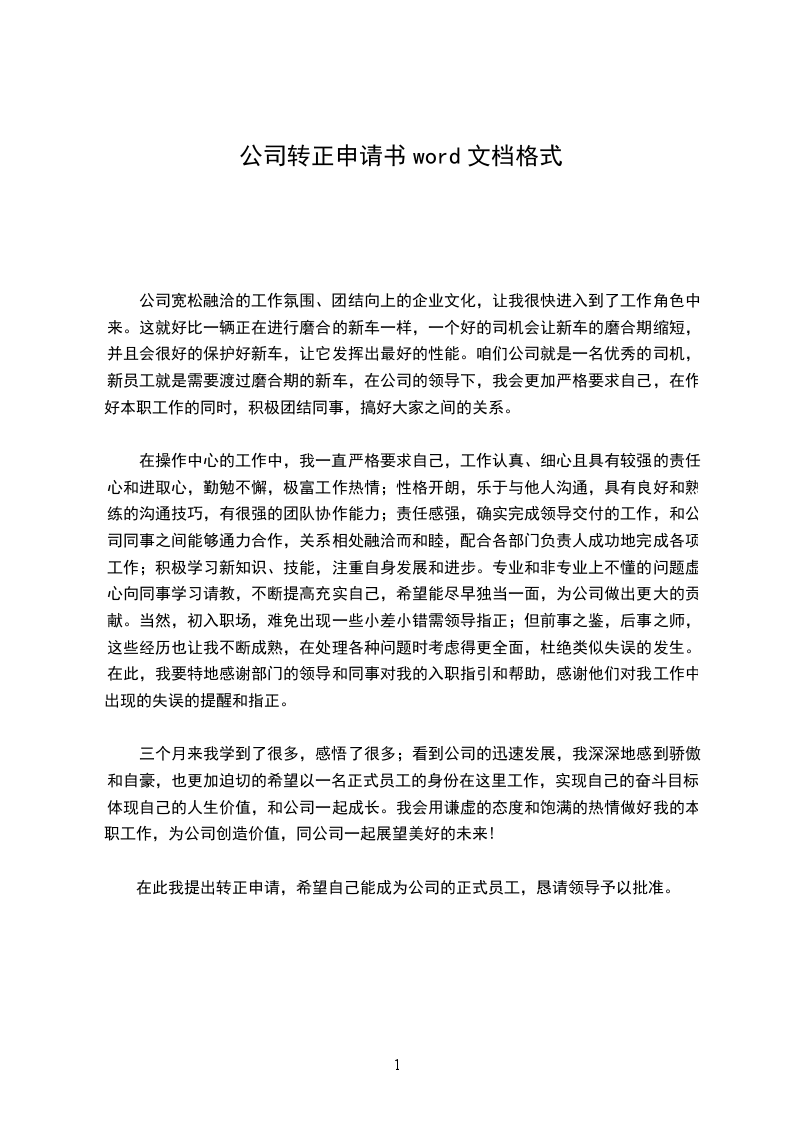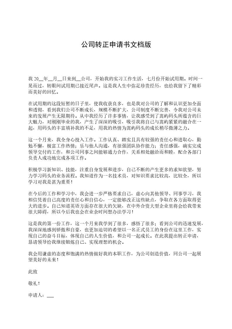 20__年_月_日成为公司的试用员工,到今天_个月试用期已满,根据公司的规章制度,现申请转为公司正式员工。