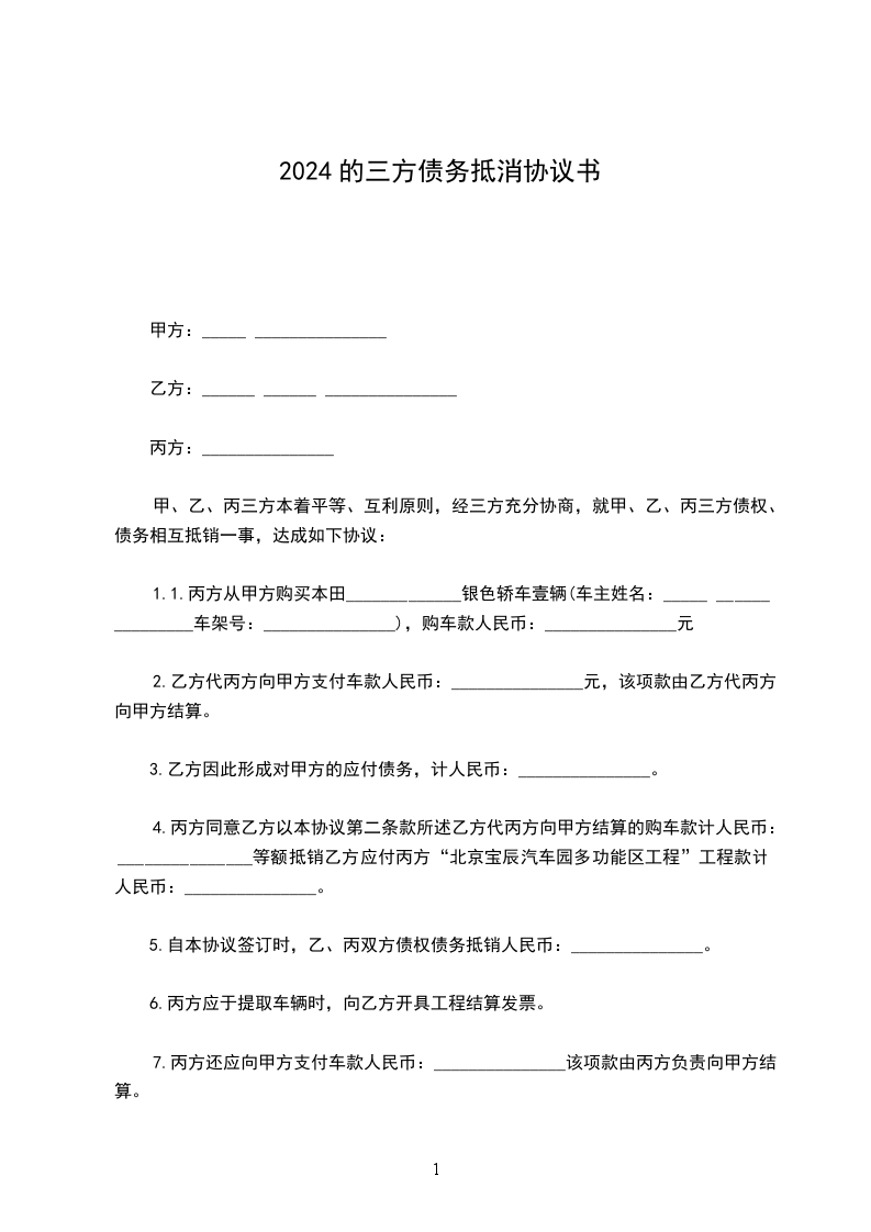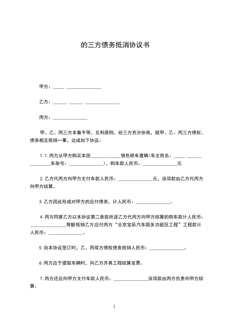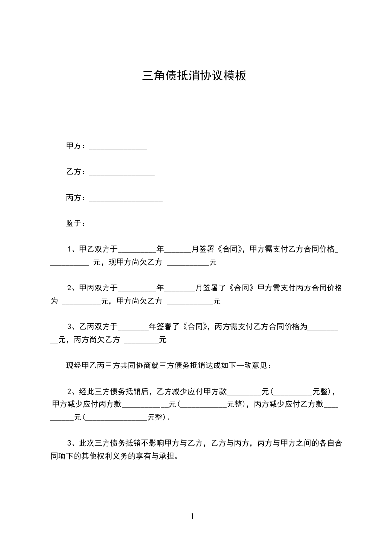 鉴于三方截止____ 年 _____ 月 _____ 日的如下债权债务关系: