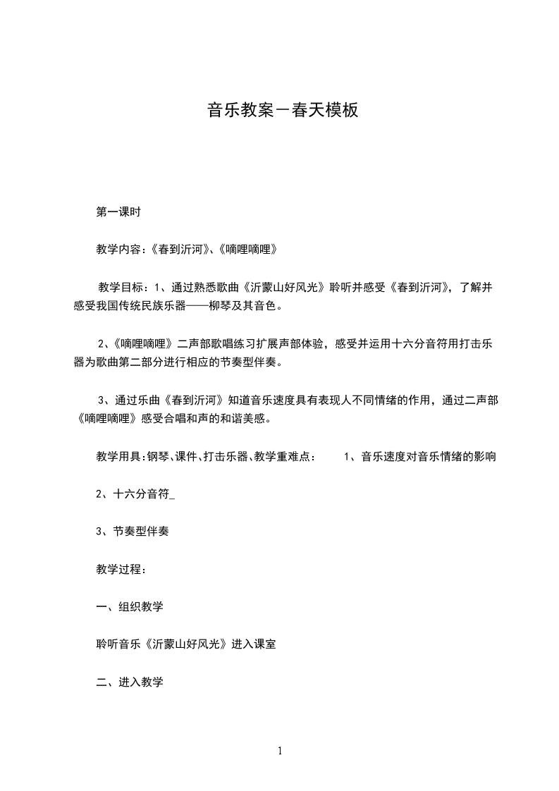 (一)通过初步聆听乐曲春到沂河,学习歌曲春天举行音乐会让学生感受到音乐的快乐,并能把快乐的情绪表现出来。