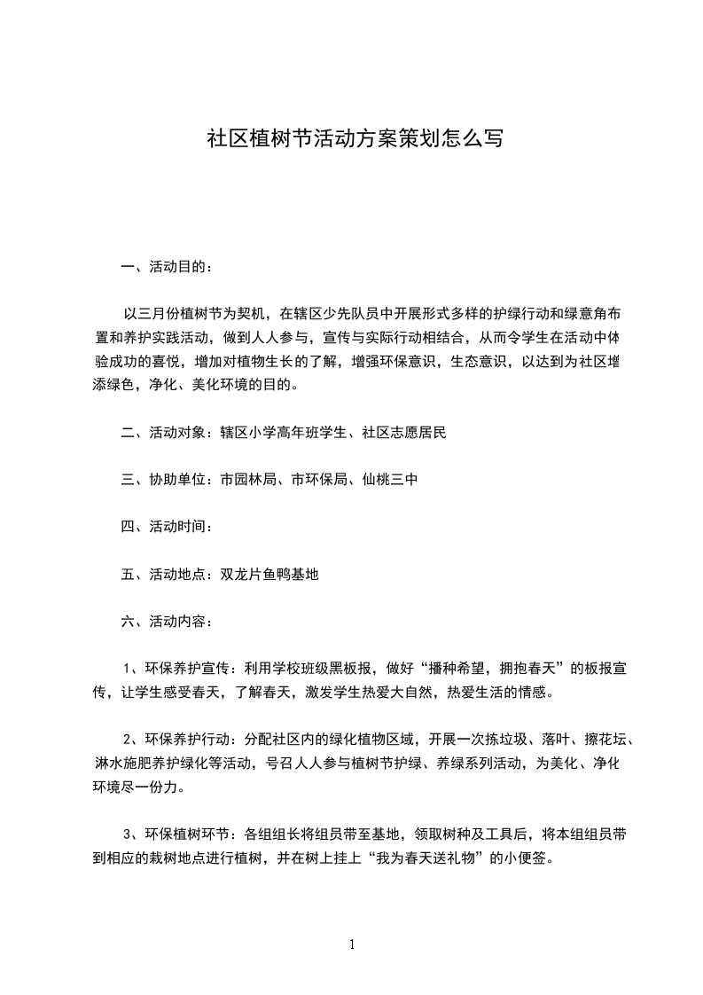 2、中期:a为宣传此此次活动的精神及环保的意意义,于3月12日上午步步行至植树地点,本篇文章章来自资料管理。清点点人数b请师生务必带好好植树工具,娱乐节目的同同学做好准备工作,待植树树结束后表演c植树开始始,请大家注意安全