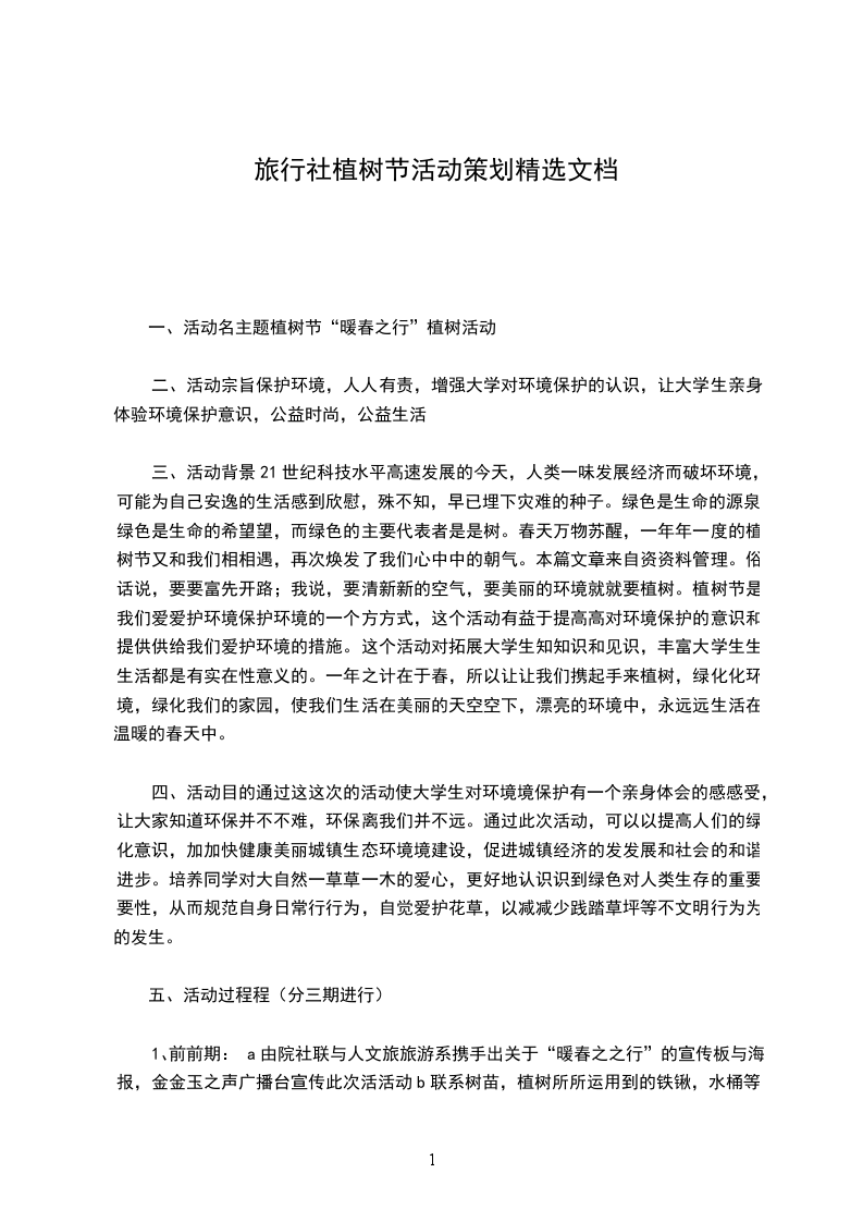 三、活动背景21世纪科技水平高速发展的今天,人类一味发展经济而破坏环境,可能为自己安逸的生活感到欣慰,殊不知,早已埋下灾难的种子。绿色是生命的源泉,绿色是生命的希望望,而绿色的主要代表者是是树。春天万物苏醒,一年年一度的植树节又和我们相相遇,再次焕发了我们心中中的朝气。本篇文章来自资资料管理。俗话说,要要富先开路;我说,要清新新的空气,要美丽的环境就就要植树。植树节是我们爱爱护环境保护环境的一个方方式,这个活动有益于提高高对环境保护的意识和提供供给我们爱护环境的措施。这个活动对拓展大学生知知识和见识,丰富大学生生生活都是有实在性意义的。一年之计在于春,所以让让我们携起手来植树,绿化化环境,绿化我们的家园,使我们生活在美丽的天空空下,漂亮的环境中,永远远生活在温暖的春天中。