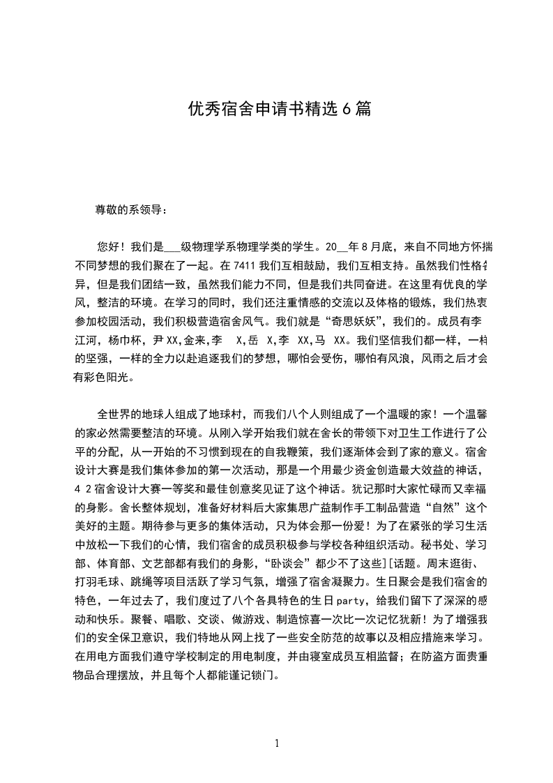 优秀宿舍申请书篇五
