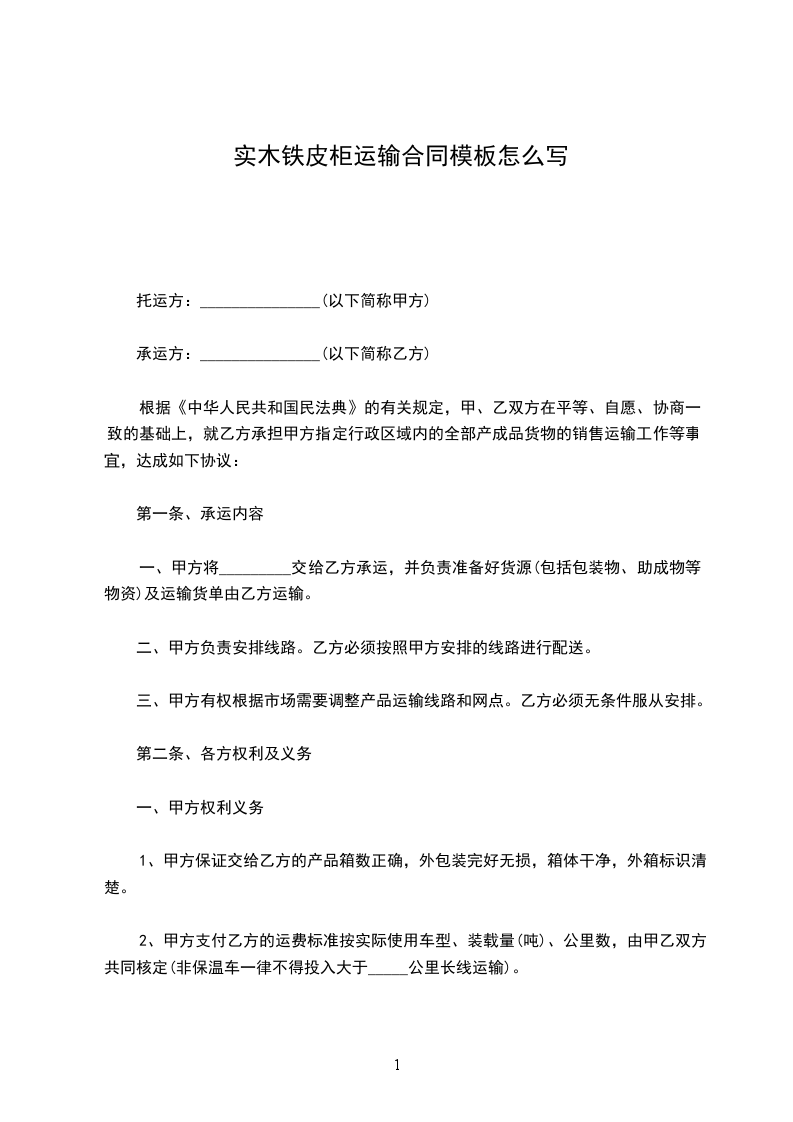 承运方:__________________(以下简称乙方)
