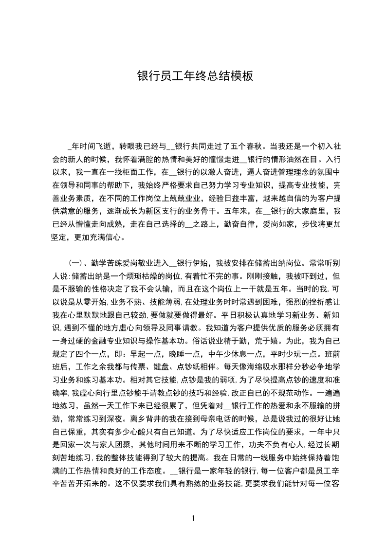 _年时间飞逝,转眼我已经与__银行共同走过了五个春秋。当我还是一个初入社会的新人的时候,我怀着满腔的热情和美好的憧憬走进__银行的情形油然在目。入行以来,我一直在一线柜面工作,在__银行的以激人奋进,逼人奋进管理理念的氛围中,在领导和同事的帮助下,我始终严格要求自己努力学习专业知识,提高专业技能,完善业务素质,在不同的工作岗位上兢兢业业,经验日益丰富,越来越自信的为客户提供满意的服务,逐渐成长为新区支行的业务骨干。五年来,在__银行的大家庭里,我已经从懵懂走向成熟,走在自己选择的__之路上,勤奋自律,爱岗如家,步伐将更加坚定,更加充满信心。