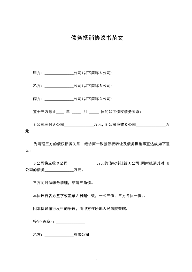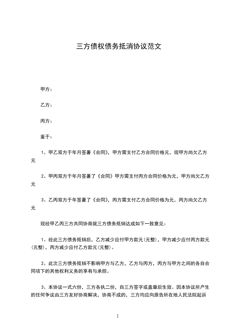 为清理三方的债权债务关系,经协商一致就债权转让及债务抵销事宜达成如下意见: