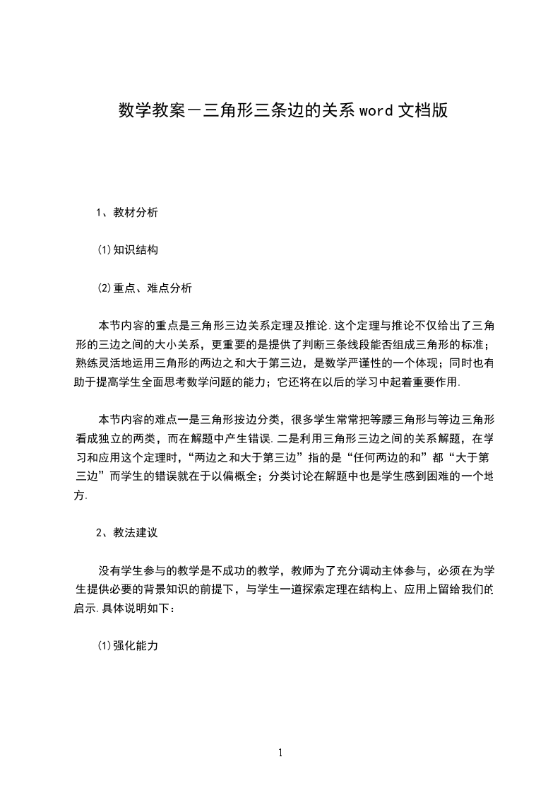 三角形边的关系教学设计与反思教学内容:人教版小学数学四年级下册P82的内容。教学目标: