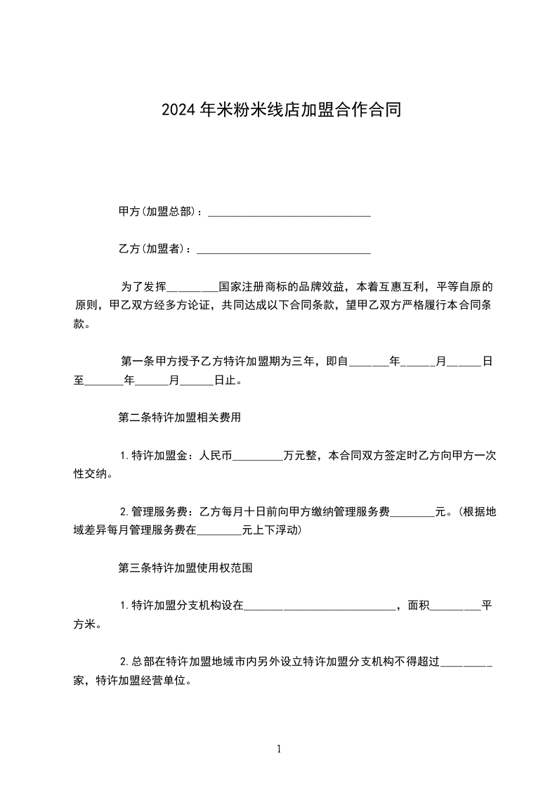 1.有关甲方的说明:“_________公司”是甲方的公司名称,“_________”是甲方的专卖店品牌名称。