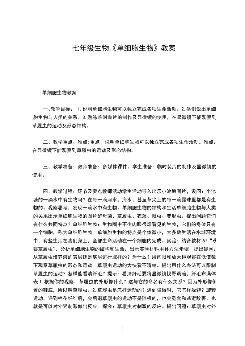 3、情感、态度、价值观目标:初步建立生物体是一个统一整体的生物学观点。重点难点教学重点:植物体和动物体的结构层次,器官和系统的概念。教学难点:
