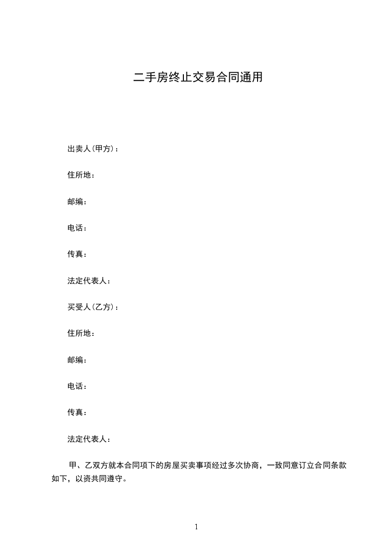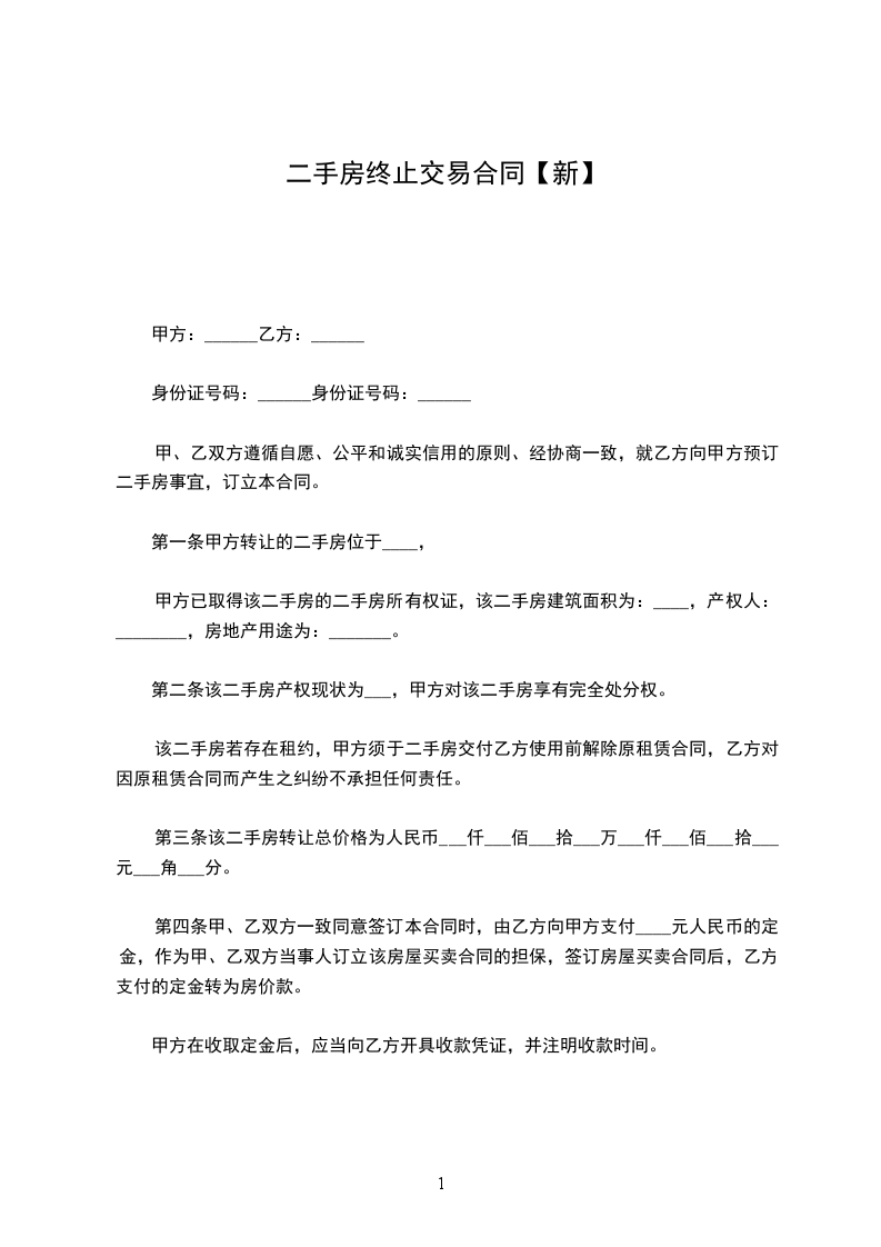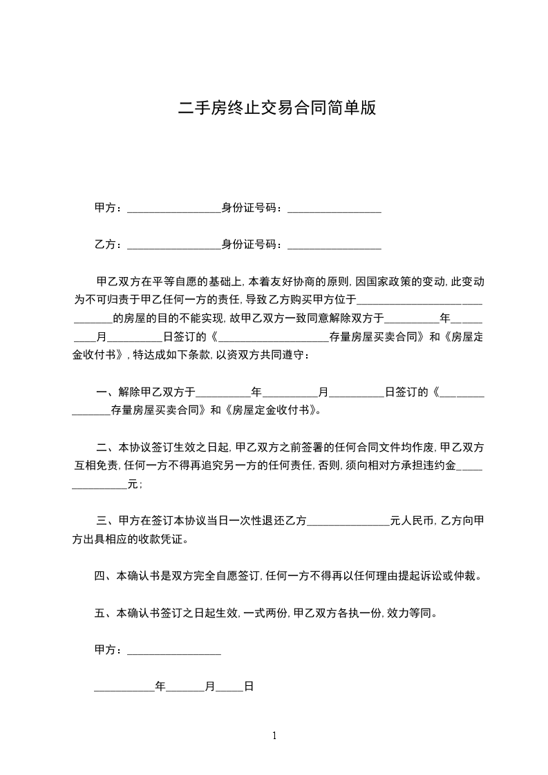 一、解除甲乙双方于__________年__________月__________日日签订的《_______________存量房屋买卖合同》和《房屋定金收付书》。