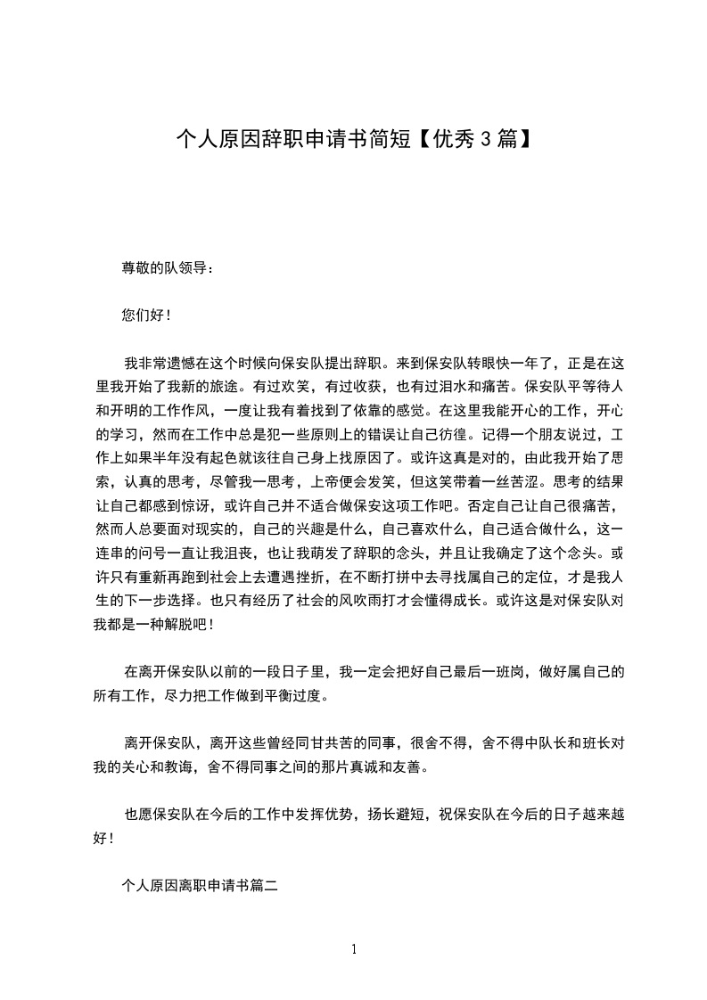 我非常遗憾在这个时候向保安队提出辞职。来到保安队转眼快一年了,正是在这里我开始了我新的旅途。有过欢笑,有过收获,也有过泪水和痛苦。保安队平等待人和开明的工作作风,一度让我有着找到了依靠的感觉。在这里我能开心的工作,开心的学习,然而在工作中总是犯一些原则上的错误让自己彷徨。记得一个朋友说过,工作上如果半年没有起色就该往自己身上找原因了。或许这真是对的,由此我开始了思索,认真的思考,尽管我一思考,上帝便会发笑,但这笑带着一丝苦涩。思考的结果让自己都感到惊讶,或许自己并不适合做保安这项工作吧。否定自己让自己很痛苦,然而人总要面对现实的,自己的兴趣是什么,自己喜欢什么,自己适合做什么,这一连串的问号一直让我沮丧,也让我萌发了辞职的念头,并且让我确定了这个念头。或许只有重新再跑到社会上去遭遇挫折,在不断打拼中去寻找属自己的定位,才是我人生的下一步选择。也只有经历了社会的风吹雨打才会懂得成长。或许这是对保安队对我都是一种解脱吧!
