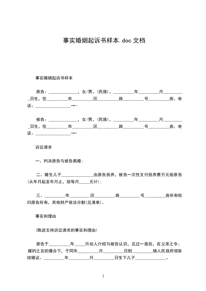原告:_________________姓名,性别,出生年月,民族,籍贯(可省略),职业,工作单位和住址,联系方法。被告:_________________姓名,性别,出生年月,民族,籍贯(可省略),职业,工作单位和住址,联系方法。