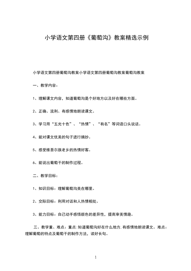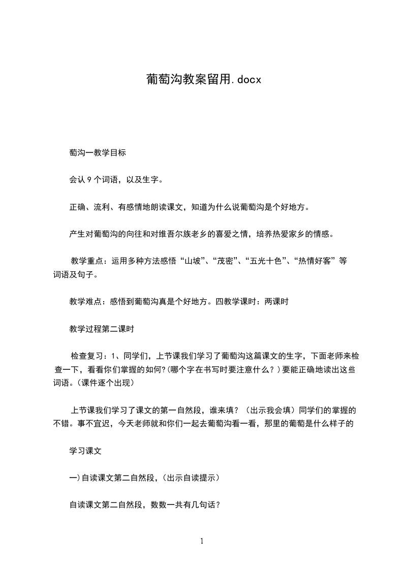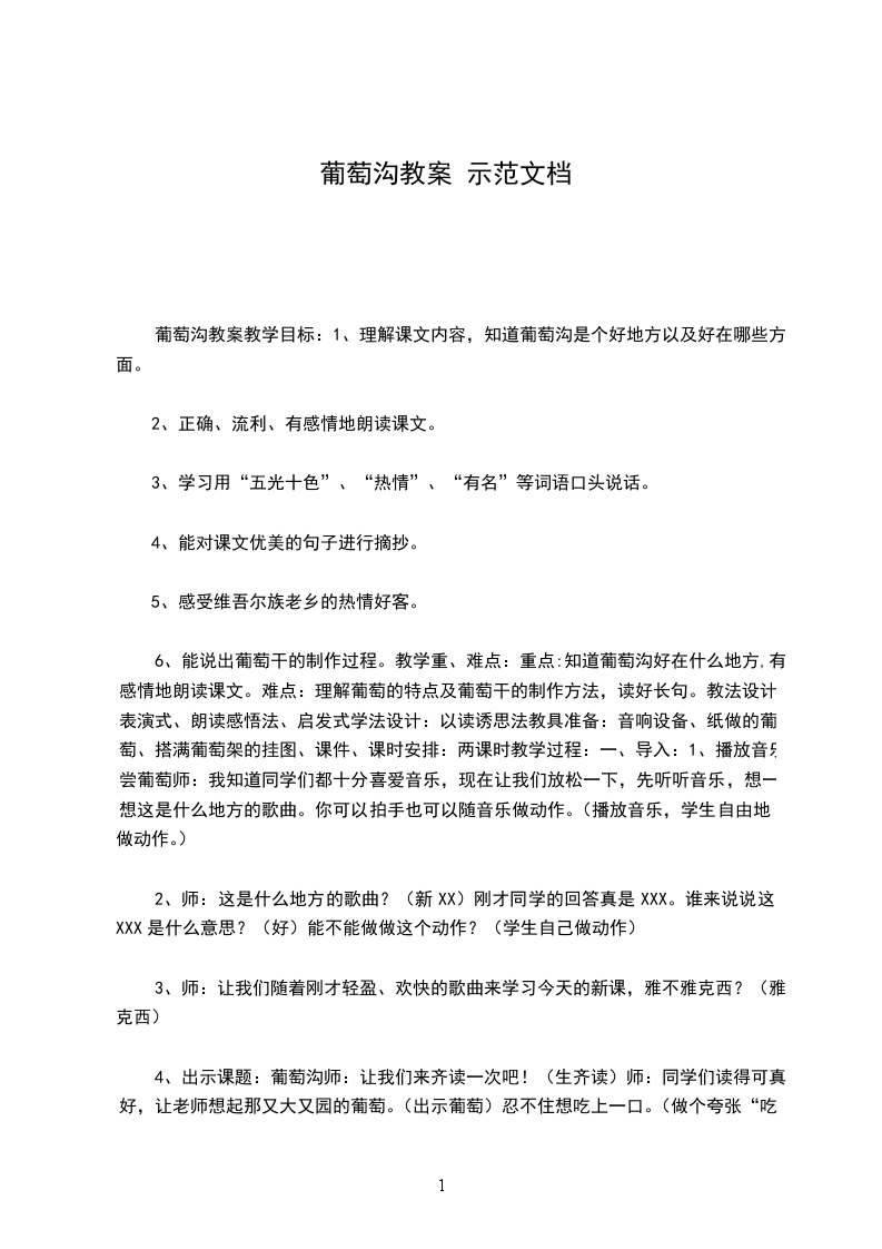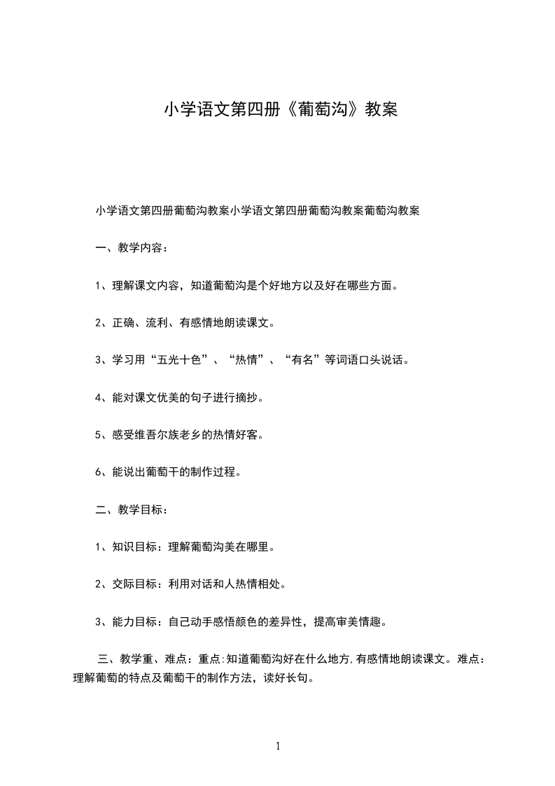 葡萄沟教案教学目标:1、理解课文内容,知道葡萄沟是个好地方以及好在哪些方面。