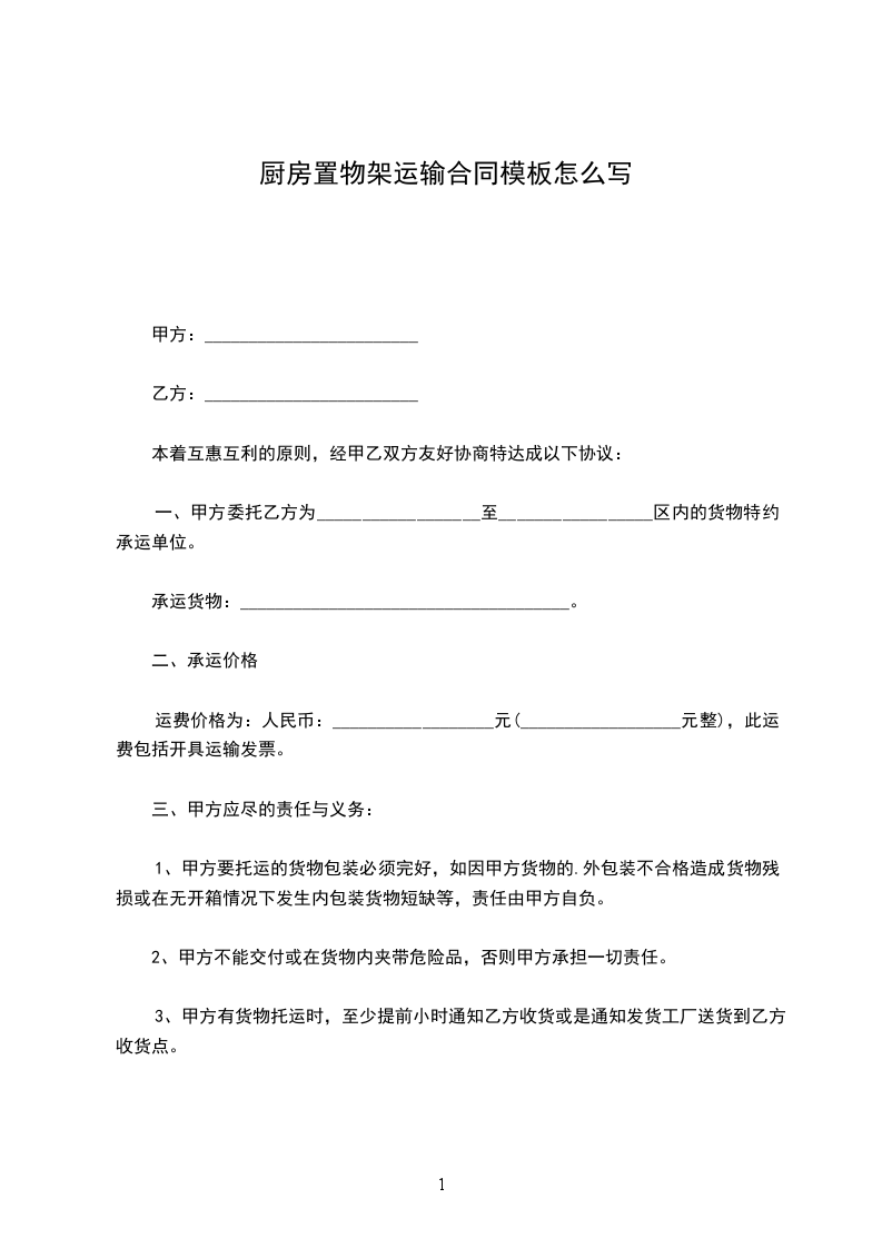 甲方委托乙方运输由_____________________到_____________________,经甲乙双方协商,自愿达成如下协议: