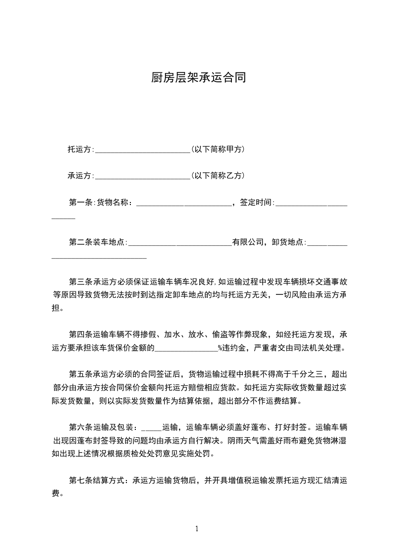 7、乙方承运危险,贵重货物时,行车手续必须齐全,并在保险公司办理货物保险手续方可运行,如乙方隐瞒事实,造成后果均由乙方全部承担。