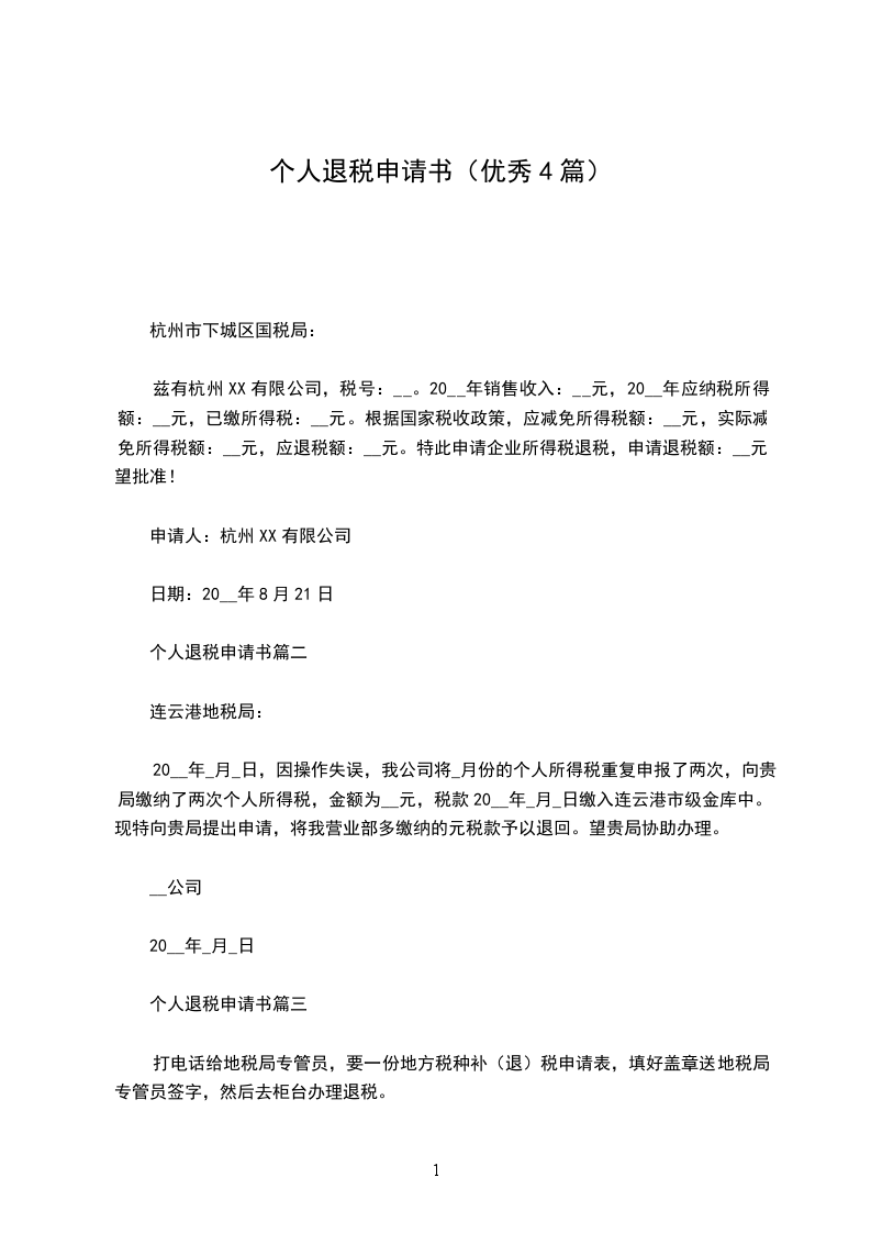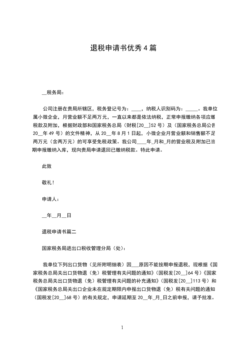 退税申请书篇三