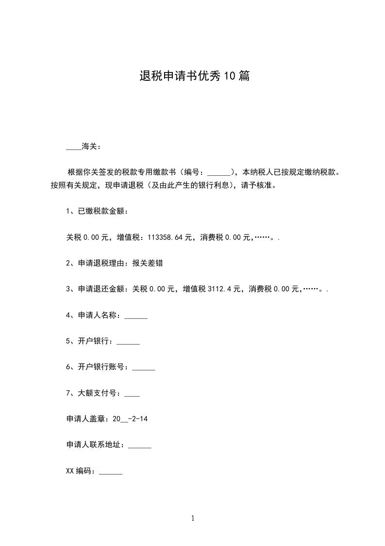 退税申请书篇二