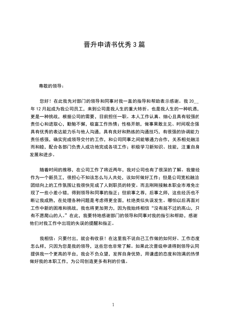 相信公司领导会慎重考虑我的申请。我想通过这个申请传达给公司是我勇承担更重要工作的信心和决心。个人另外说明的一点是:不管公司同意与否、批复意见如何,我都会一如既往努力工作,争取为公司创造更大的价值,做出更大的贡献,因为我始终坚信这所有的努力,我自己将是最大的受益者。