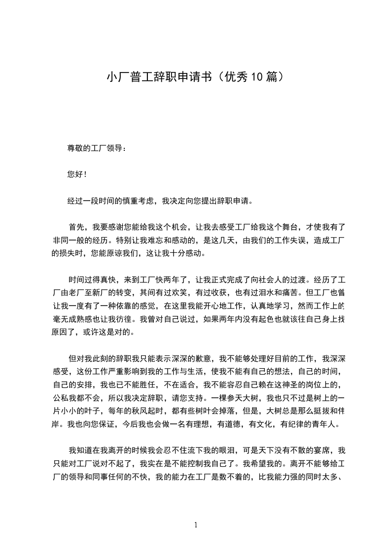 第一次递交书面函,竟然是辞职申请,实在是抱歉。我来工厂已经1个多月了,渐渐的感到对工厂里的生活环境我不太适应。想了很久,我不愿每天像机器人一样活着,我的梦想还没有完成,不能到此而终。这种生活不是我想要得!