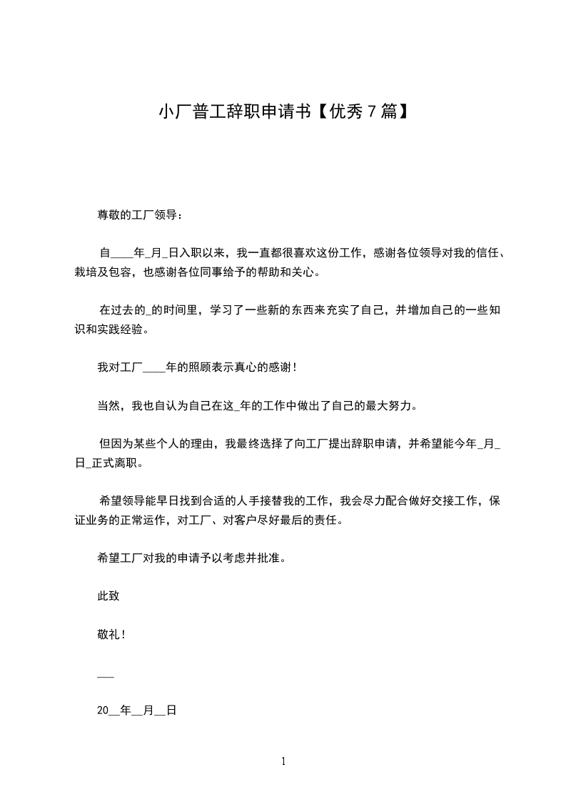 工厂普工辞职申请书篇三