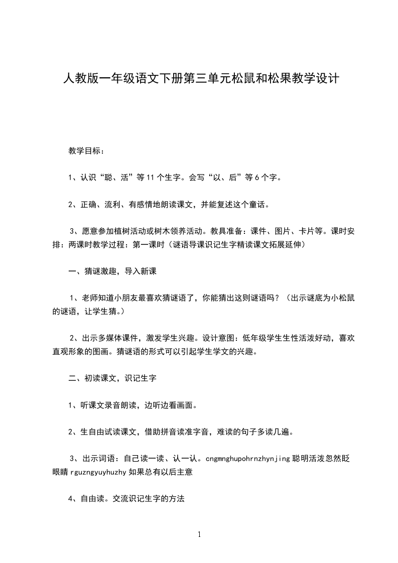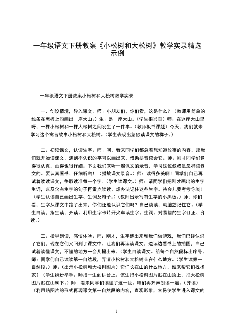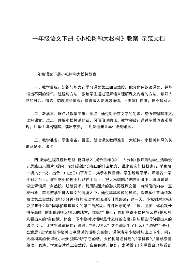 一年级语文下册小松树和大松树教案