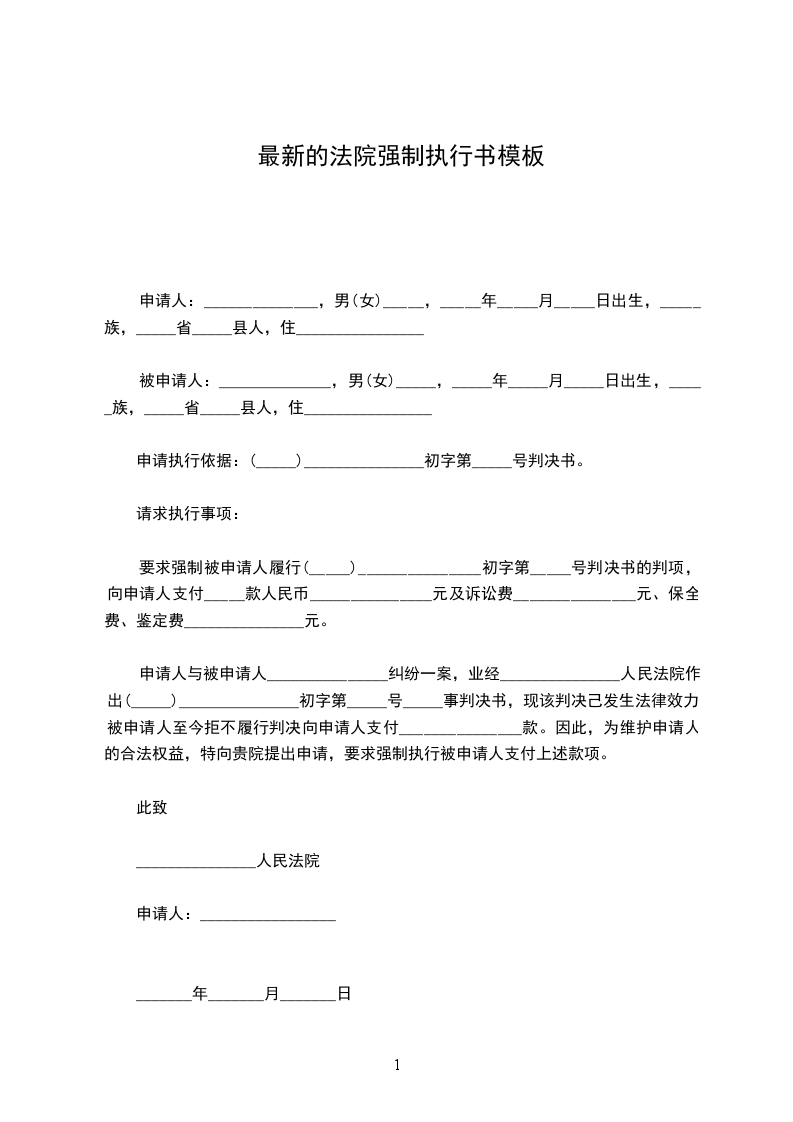 要求强制被申请人履行(_______)_______初字第_______号判决书的判项,向申请人支付_______款人民币______________元及诉讼费______________元、保全费、鉴定费______________元。