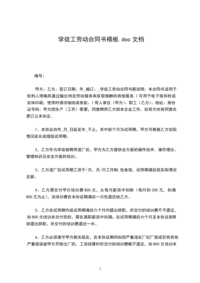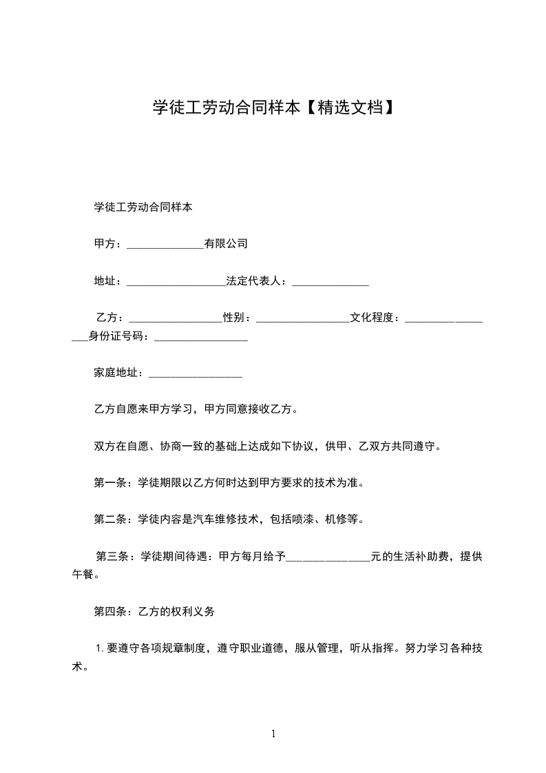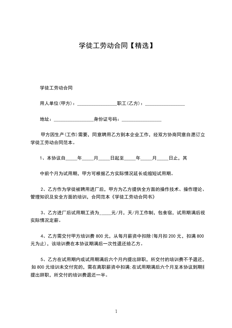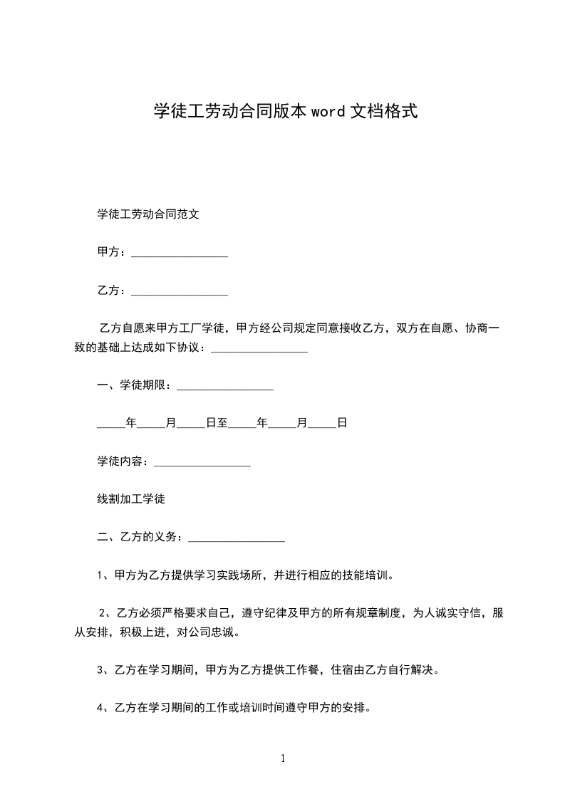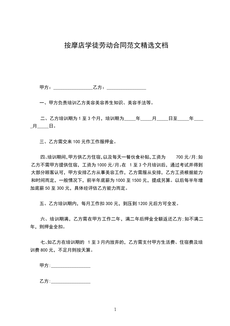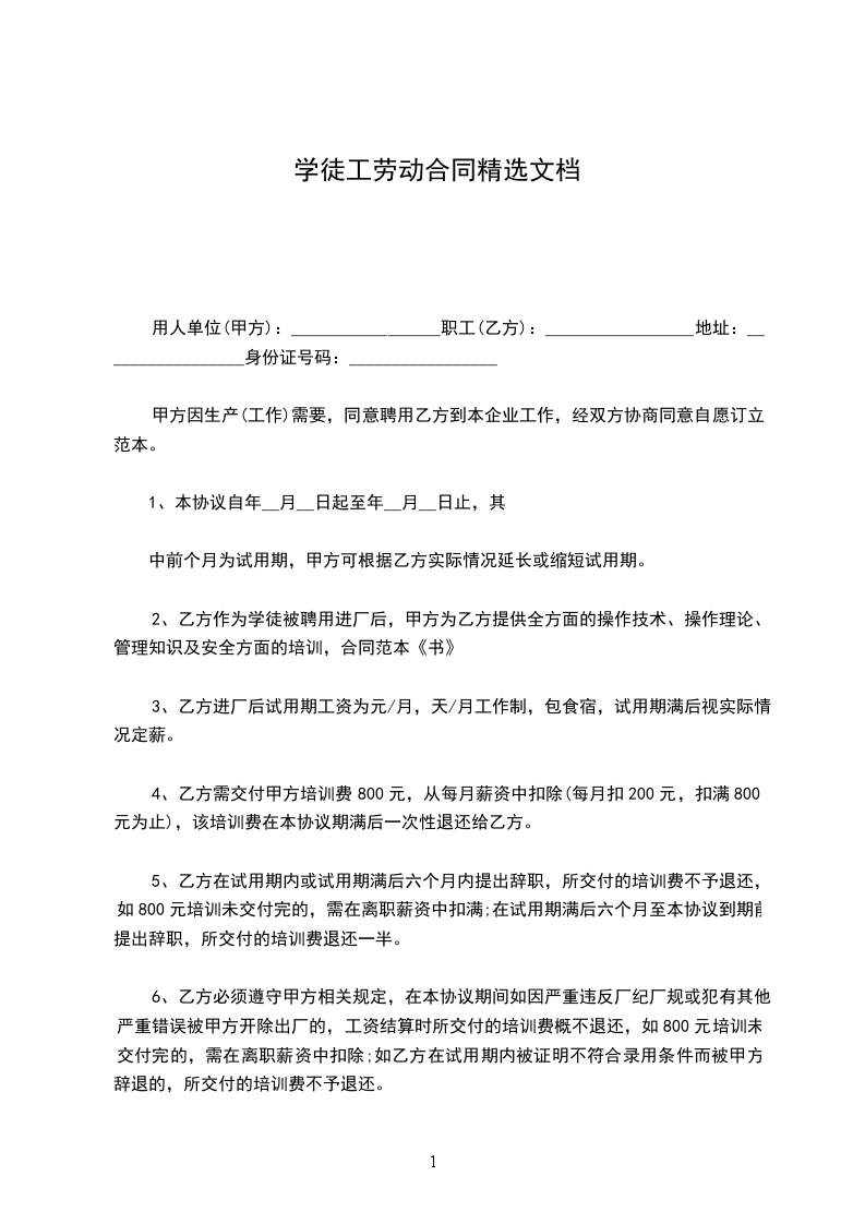 2、乙方作为学徒被聘用进厂后,甲方为乙方提供全方面的操作技术、操作理论、管理知识及安全方面的培训,合同范本《书》