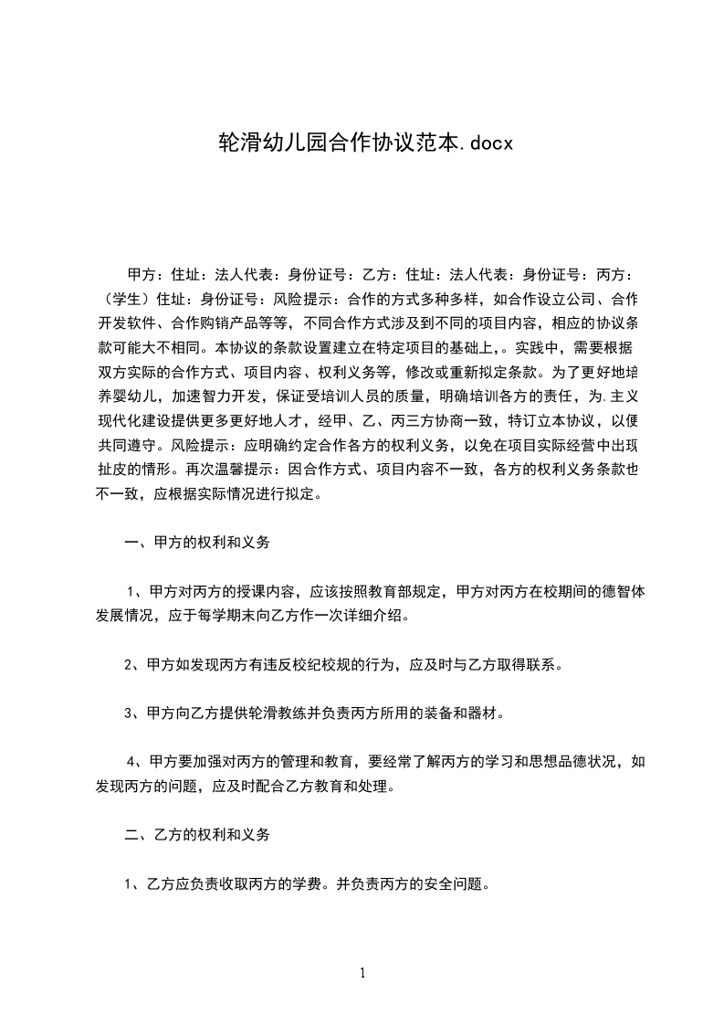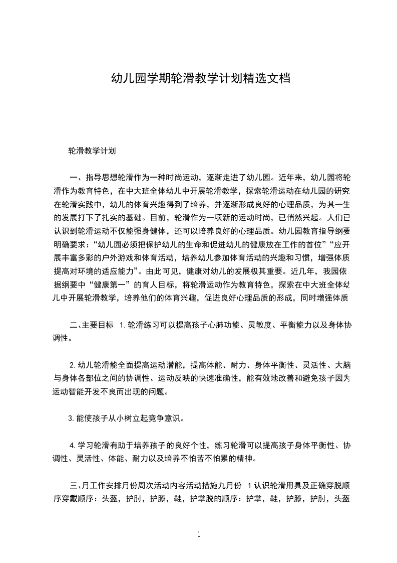 一、指导思想轮滑作为一种时尚运动,逐渐走进了幼儿园。近年来,幼儿园将轮滑作为教育特色,在中大班全体幼儿中开展轮滑教学,探索轮滑运动在幼儿园的研究。在轮滑实践中,幼儿的体育兴趣得到了培养,并逐渐形成良好的心理品质,为其一生的发展打下了扎实的基础。目前,轮滑作为一项新的运动时尚,已悄然兴起。人们已认识到轮滑运动不仅能强身健体,还可以培养良好的心理品质。幼儿园教育指导纲要明确要求:“幼儿园必须把保护幼儿的生命和促进幼儿的健康放在工作的首位”“应开展丰富多彩的户外游戏和体育活动,培养幼儿参加体育活动的兴趣和习惯,增强体质,提高对环境的适应能力”。由此可见,健康对幼儿的发展极其重要。近几年,我园依据纲要中“健康第一”的育人目标,将轮滑运动作为教育特色,探索在中大班全体幼儿中开展轮滑教学,培养他们的体育兴趣,促进良好心理品质的形成,同时增强体质。
