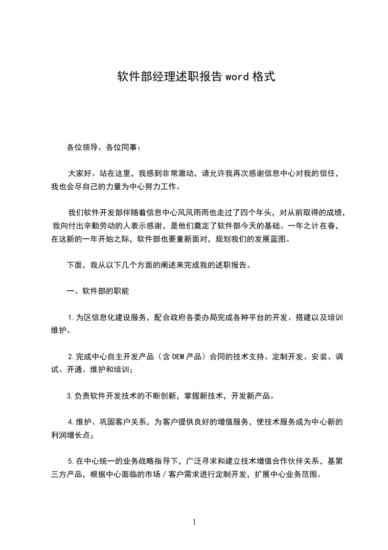 以上所报告的内容,存在许多不妥之处,希望大家能予以认真考虑,并提出宝贵意见,我代表软件部谢谢大家。