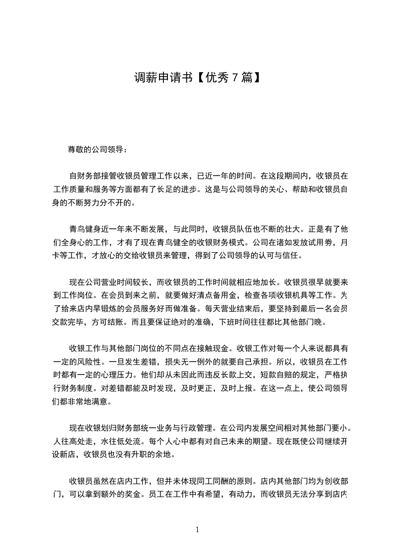 您好!本人加入贵司团队已有7个多月,这段共同成长的岁月里,我对公司有着一定的感情,我熟悉公司现有每一位工作伙伴,熟悉他们的工作方式以及做事风格,并能很好地共事。在此,我感谢领导们对我栽培和帮助,也感谢领导们给予我的信任。鉴现在的职位调动,以及工作职责范围和工作强度的加大,望公司能将我的月薪调整至元。
