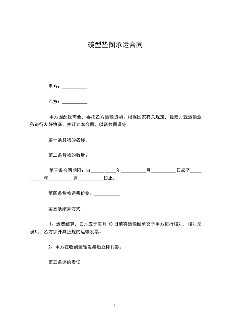 第七条 运输费用、结算方式 :本次运输运费__元,本合同签订后托运人预付定金__元,货物到达卸货并由收货人确认货物完好无损后7日内支付剩余的费用。