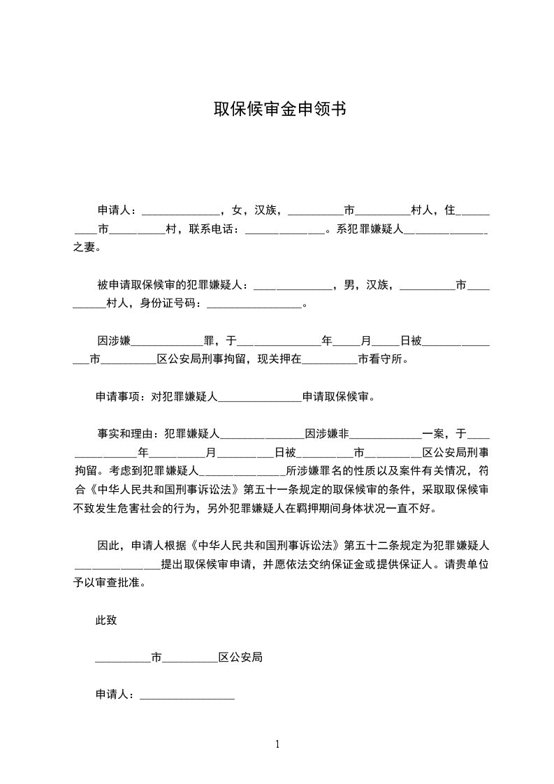 被申请取保候审的犯罪嫌疑人:______________,男,汉族,__________市__________村人,身份证号码:_________________。
