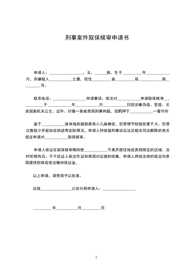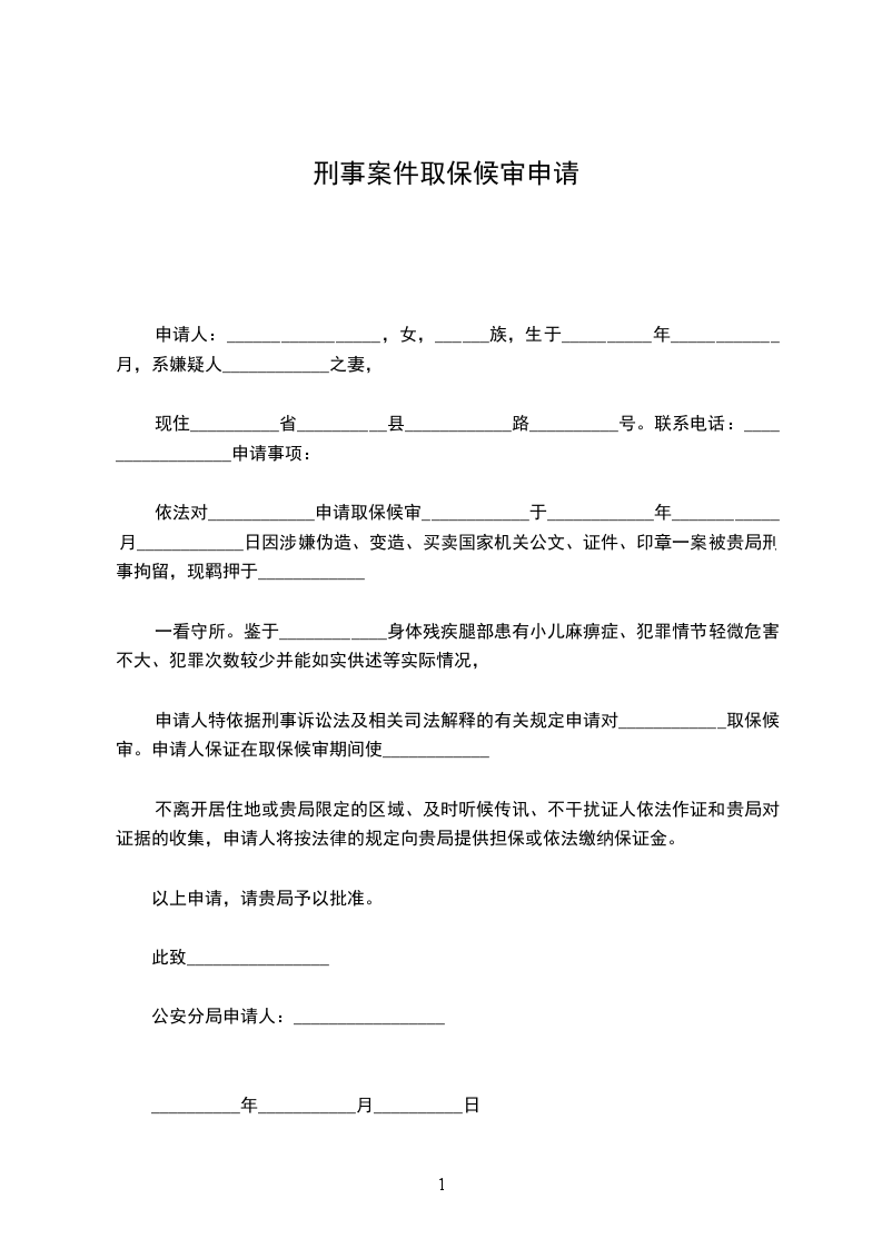 申请事项:对犯罪嫌疑人_____________申请取保候审。