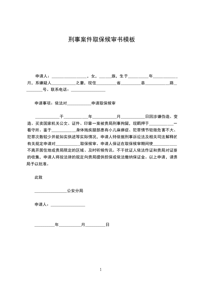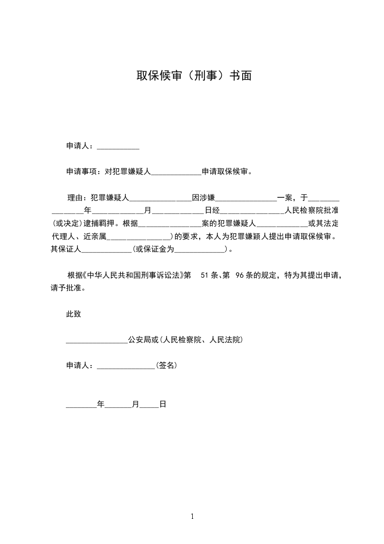 申请事项:对犯罪嫌疑人_____________申请取保候审。