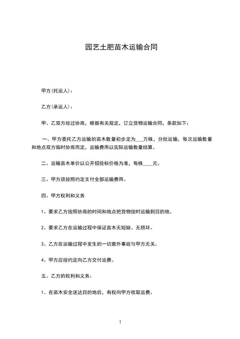 2、要求乙方在运输过程中保证苗木无短缺、无损坏。