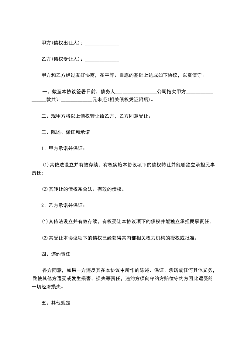 一、截至本协议签署日前,债务人_________________公司拖欠甲方_________________款共计_____________元未还(相关债权凭证附后)。