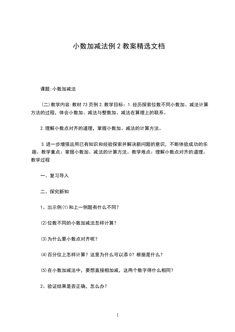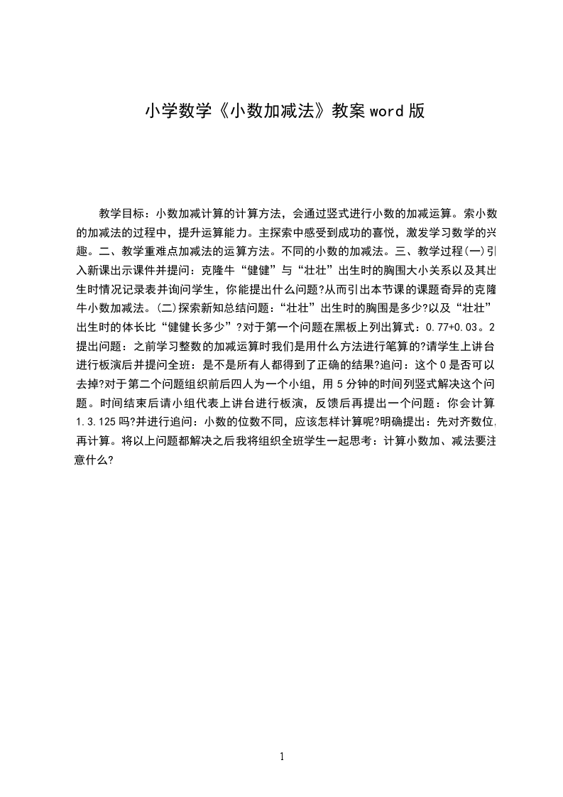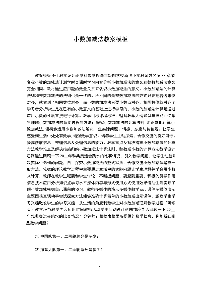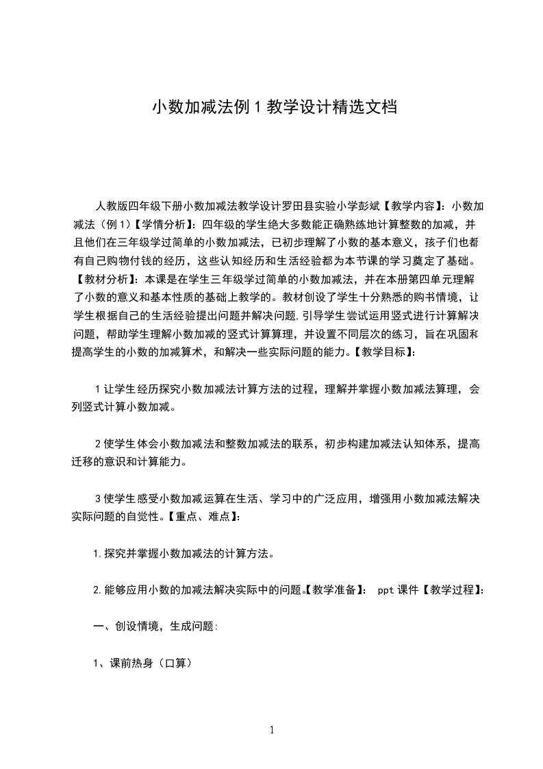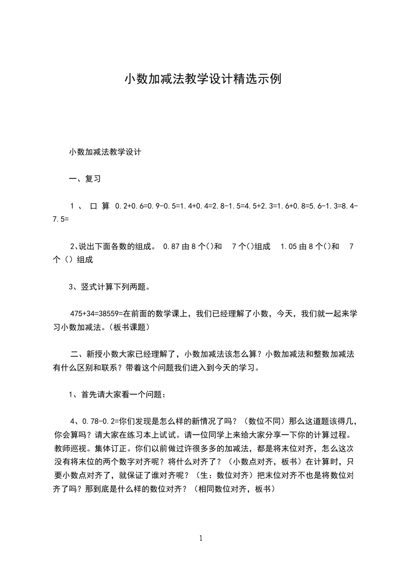小数加减法教学设计