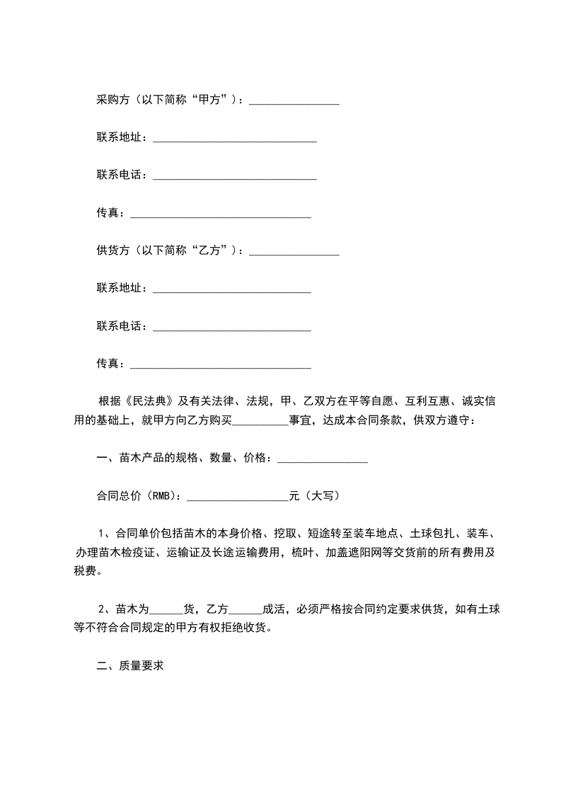 2、要求乙方在运输过程中保证苗木无短缺、无损坏。