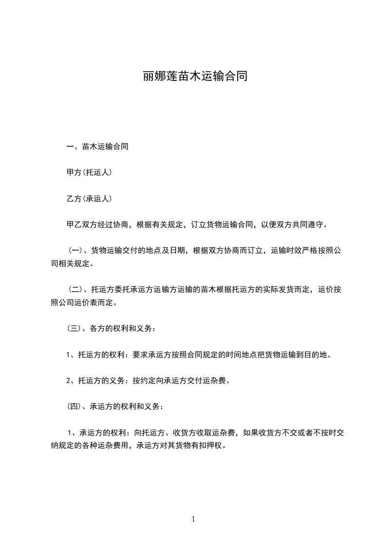 一、甲方委托乙方运输的苗木数量初步定为___万株,分批运输,每次运输数量和地点双方临时协商而定,运输费用以实际运输数量结算。